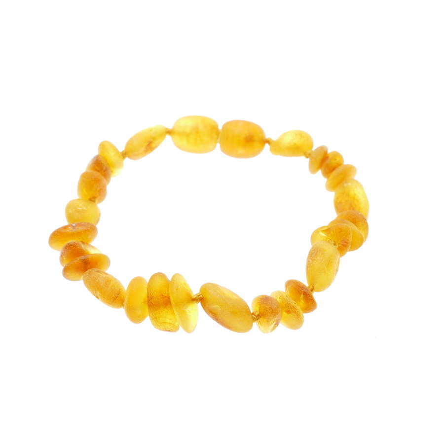 Divu dažādu formu medus krāsas nepulētā dzintara aproce bērnam